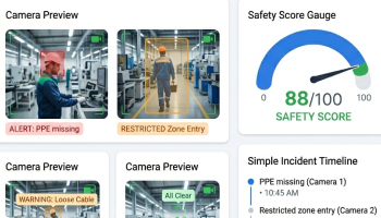 Automated PPE monitoring, zone violation detection, hazard alerts, and safety incident tracking. Compliance reports generate themselves.